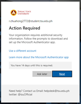 Your phone will display Tarlac State University and your email.