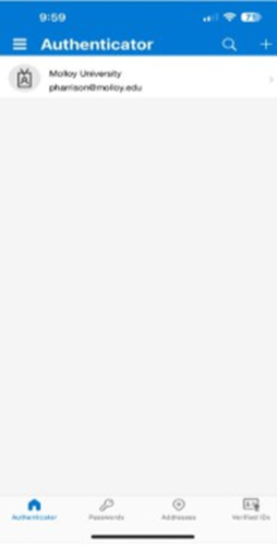 Open the Microsoft Authenticator app. Click the (+) in the upper right corner.