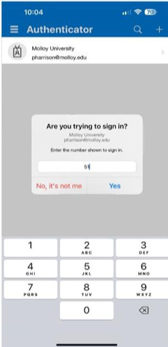 Simultaneously, in the Microsoft Authenticator app, input the code from your computer and click Yes.